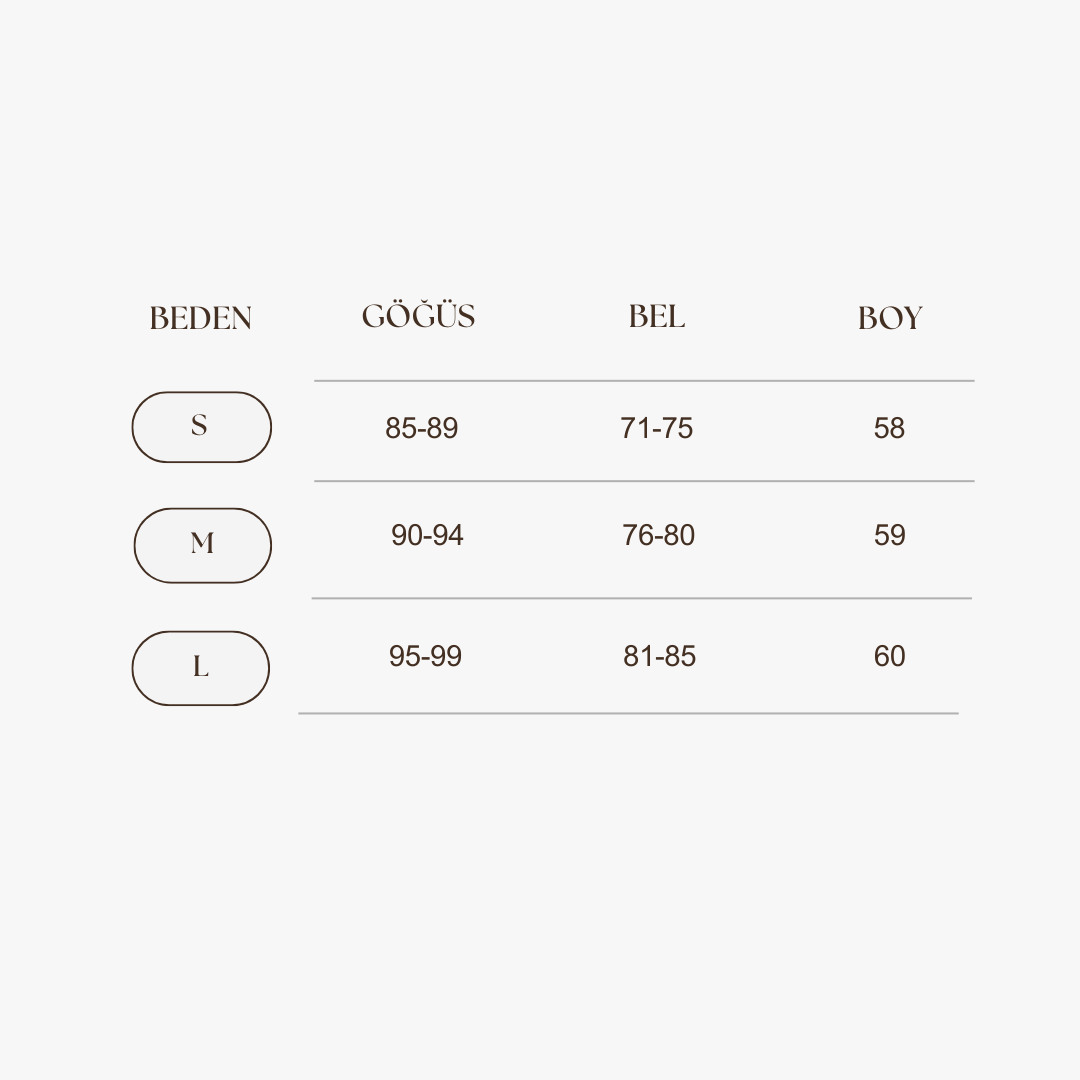 Manken Ölçüleri: Göğüs:82 cm / Bel:63 cm / Basen:90 cm / Boy:174 cm
