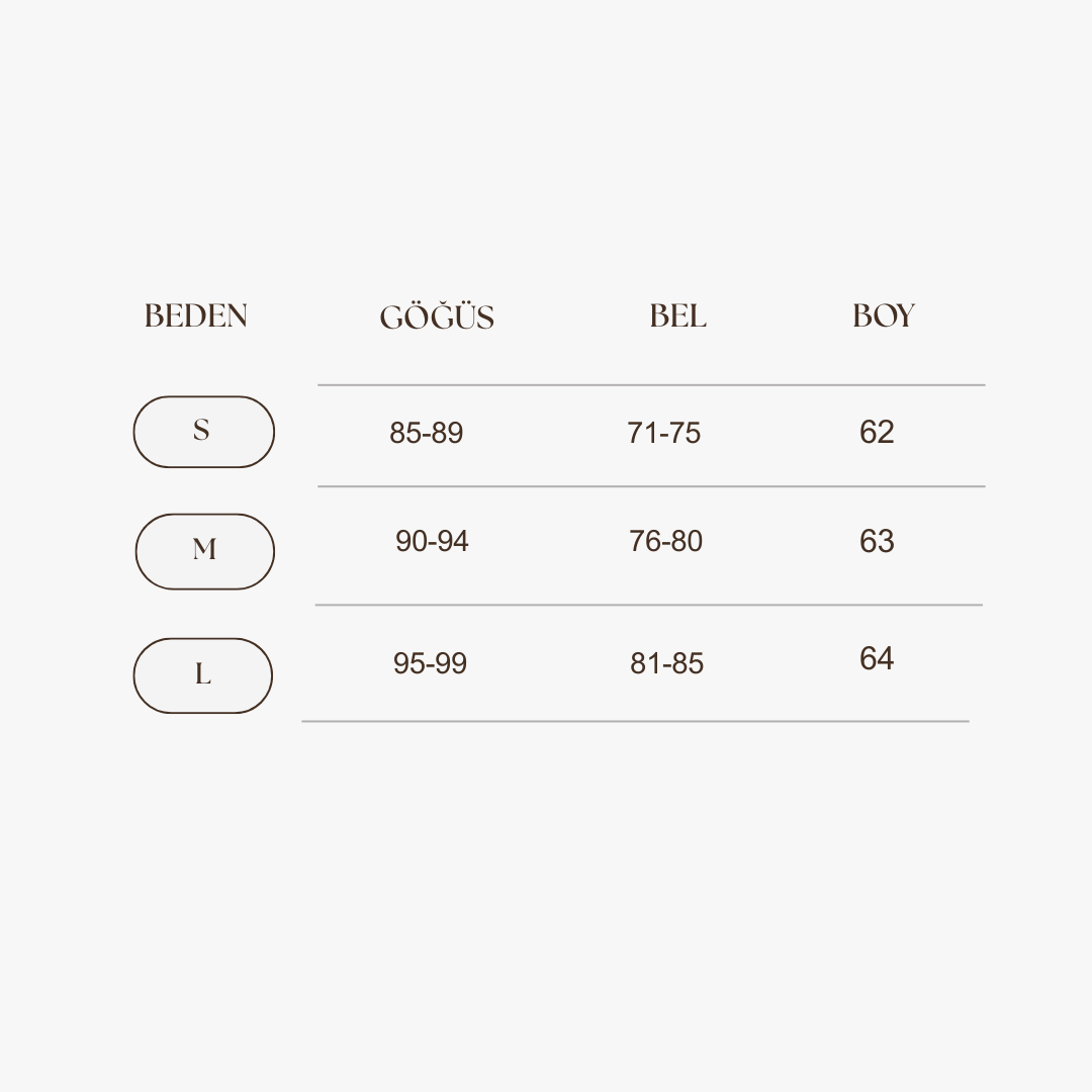 Manken Ölçüleri: Göğüs:82 cm / Bel:63 cm / Basen:90 cm / Boy:174 cm